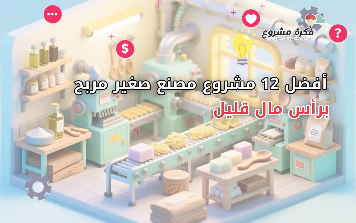 استعرضنا معك اليوم 12 فكرة مشروع مصنع صغير مربح، جميعها أفكار صناعية ناجحة وقابلة للتنفيذ بسهولة، بعضها يمكن البدء به من المنزل، وبعضها يتطلب ورشة صغيرة.